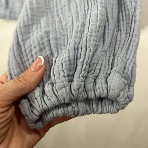 Bryn Walker Gianna Oversized Dolman balloon sleeves gauze blue top size XS. Great condition. Length is 20” and chest is 27”