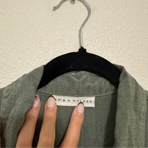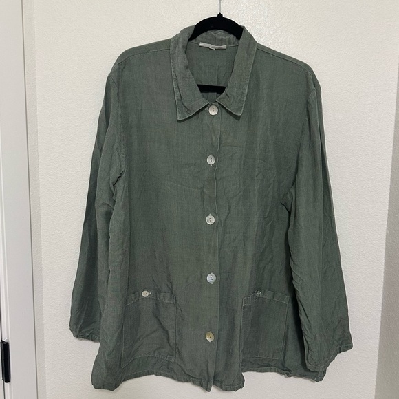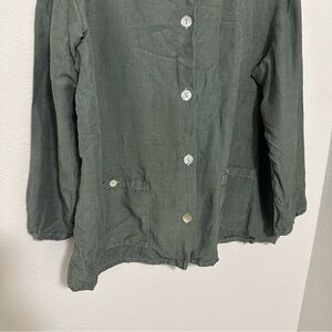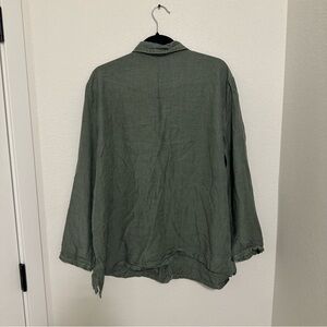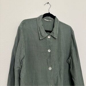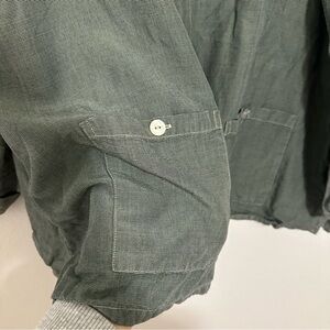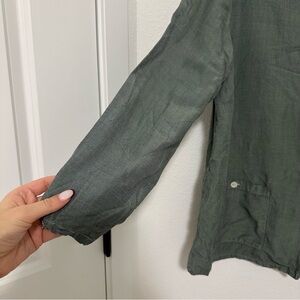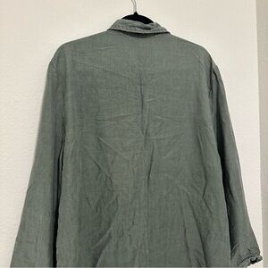 Bryn Walker Green 100% Linen Jacket Pearly Buttons Bottom Pockets Size Large