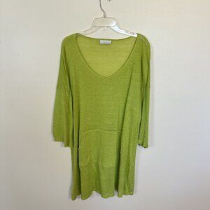 Bryn Walker Green Linen Blend V Neck Tunic Dress Womens Medium Beach Cover Up