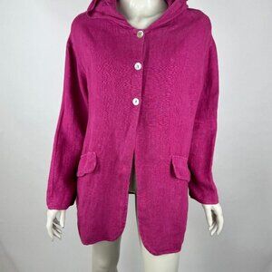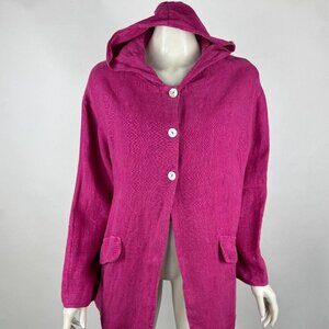 Bryn Walker Heavy Linen Hooded Jacket Women M $158 Havana Pink Button-Up Pockets