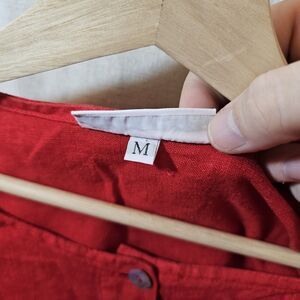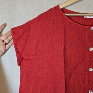 Bryn Walker Kirsh Red Bessie Light Linen Cap Sleeve Boxy Button Front Shirt M