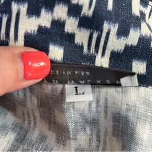 Bryn Walker Koroyo Linen Navy and White Ikat Sleeveless Wrap Vest Size L
