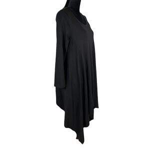 Bryn Walker Lagenlook Black Tunic Blouse - Asymmetrical Hem - Long Sleeve - Size Small