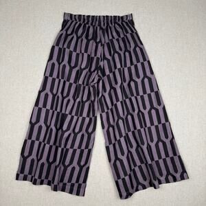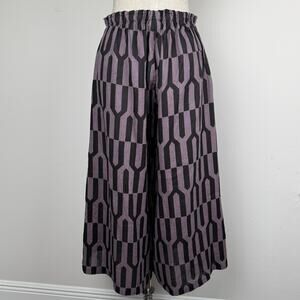 Bryn Walker Linen Geometric Cropped Wide Leg Culottes Elastic Waist