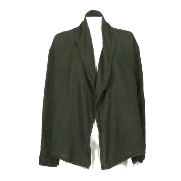 Bryn Walker Linen Hooded Open Front Cardigan Jacket Olive Green sz S USA /774