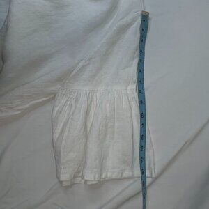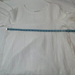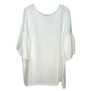 Bryn Walker Linen Round Neck Ruffle 3/4 Bell Sleeve Tunic Top White Medium