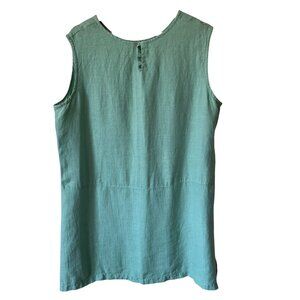 Bryn Walker Linen Top Sz Lg Green Sleeveless Tunic Lagenlook Side Vents Breezy