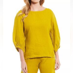 Bryn Walker Mustard Yellow Linen Puff Sleeve Top| Size S