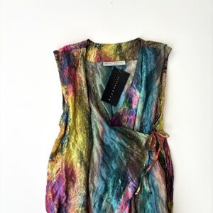 Bryn Walker Nwt Zen Taffeta Nebulosa Sleeveless V Neck Asymmetrical Hem Vest