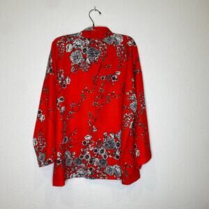 Women’s 2 piece set long sleeve polyester elastane stretch casual party floral Asian contemporary Italian USA Bryn walker alabama bellagio top blouse shirt collared button down oversized