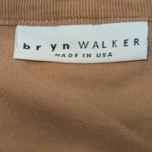Bryn Walker lightweight ribbed knit jacket in a warm tan/camel tone. Relaxed, artsy silhouette with a dramatic fold-over collar and button front closure. Adjustable drawstring ruching on both sides allows the hem to be cinched for shape or worn loose.