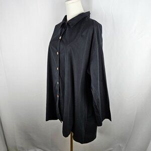 Bryn Walker Shirt Size Large Black Button-Up Oversized Tunic Lagenlook Relaxed