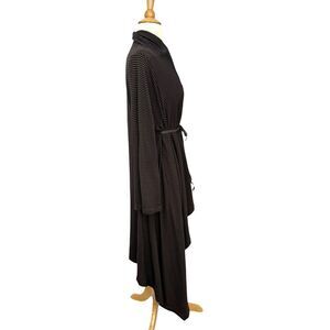 Bryn Walker Size L Long Open Cardigan Belted Black Gray Stripe Lagenlook Stretch