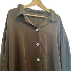 Bryn Walker Tencel Button Down Lagenlook Tunic Jacket Shirt Shacket