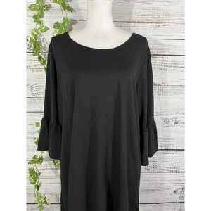 Bryn Walker Top Tunic Oversized Small Large Black Jersey Lagenlook Ruffle Sleeve