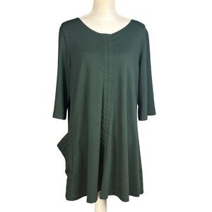 Bryn Walker Tunic Size Medium Green Organic Cotton 3/4 Sleeves Lagenlook Flowy