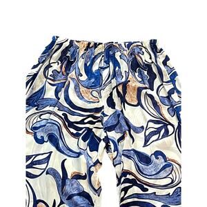 Bryn Walker Wide Leg Pants Size XXL Blue White Floral comfort Coastal Travel