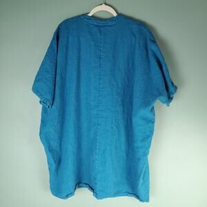 Bryn Walker Womens Blue V-Neck Oversized Linen Short Sleeve Tunic Size Medium