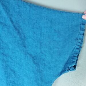 Bryn Walker Womens Blue V-Neck Oversized Linen Short Sleeve Tunic Top Size Medium