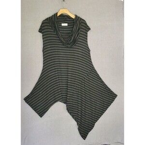 Bryn Walker Women's Gray Black Stripe Cowl Neck Lagenlook Asymmetric Dress Small