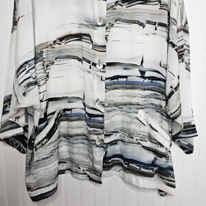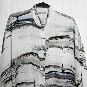 Bryn Walker Women's Silver Printed Danuta Jacket Size Large Oversized Lagenlook