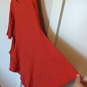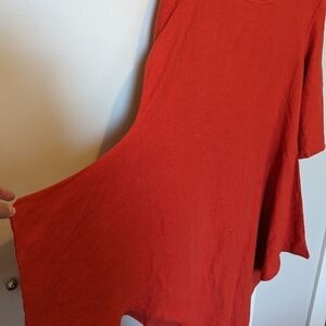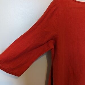 100% linen dress. Color is between red and orange. EUC. No flaws.
