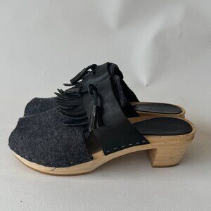 Cute penny loafer discontinued clog style. Size 38, barelyyyy worn. Fits like an 8. Felt and leather.