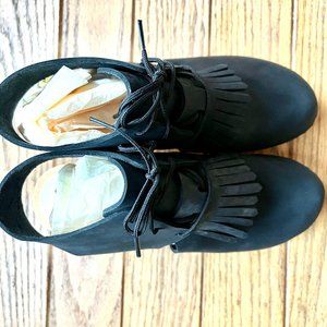 This lace up clog bootie is so cute with the kilt detail.
