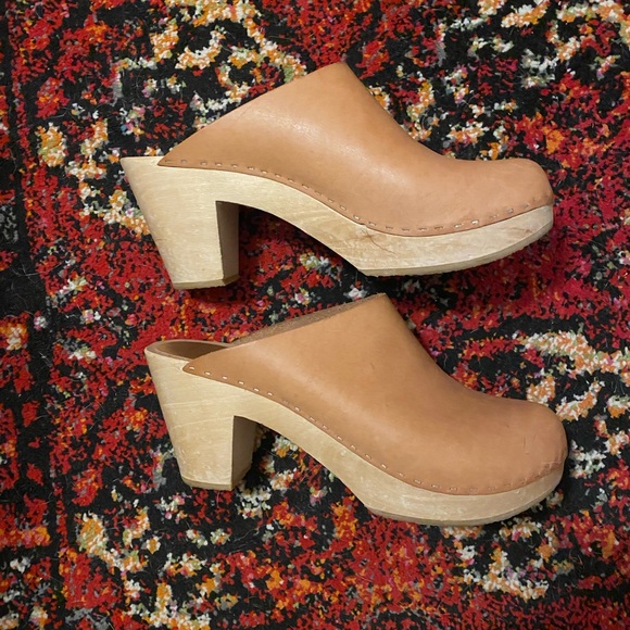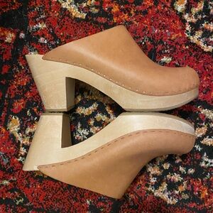 Chic leather clogs by Bryr. Slip-on style. Perfect for casual outings. Handmade in San Francisco by women owned and run Bryr Studio. Well made and built to last. I would say they fit more like a 10.5 with the heel.