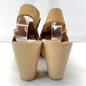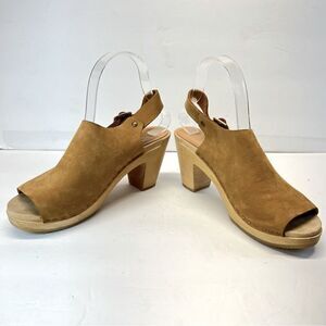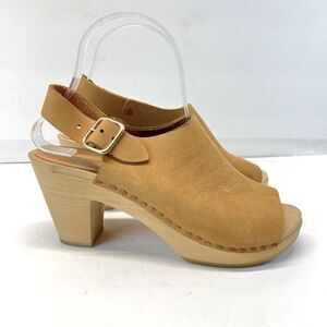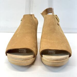 Bryr Suzie Spanish Open Toe Leather Slingback Wood Clogs in Fennel EU37/US7