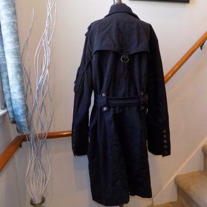 B's CLOSET Black Trench Coat Double Breasted Plus Size 2X/2T