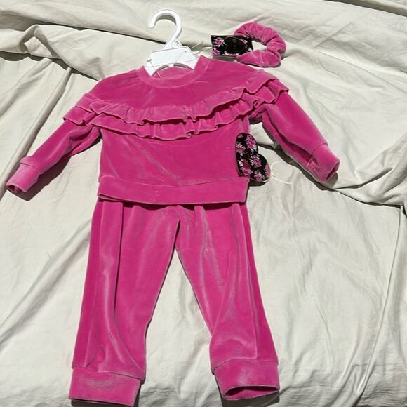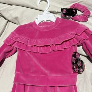 Btween 12m hot pink velour ruffled sweatsuit and scrunchie nwt perfect
