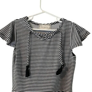 Btween Girls Dress Size 8 Black And White Stripes Pattern Tassels Short Sleeve
