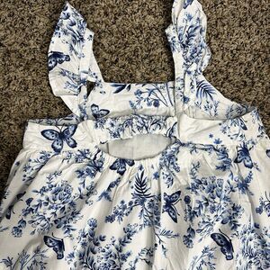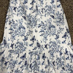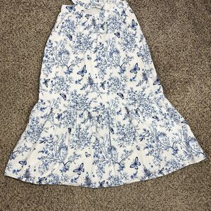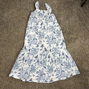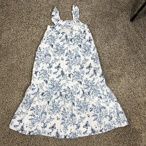 Btween Girls Sz 12 Dress Blue White Floral Linen Blend Lined Soft Ruffle Cottage