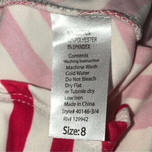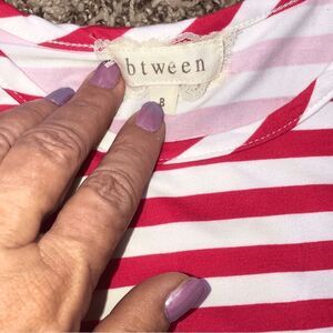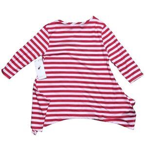 Btween Scoop Neck Asymmetric Hem Red White Stripe 3/4 Sleeve Long Top Sz Medium