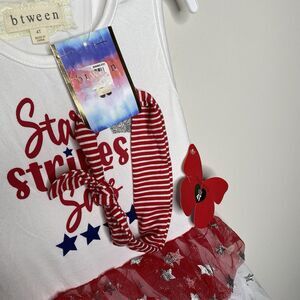 Btween Toddler Girls Stars Stripes Patriotic Party & Summer Holiday Dress 4T. Brand New. NWT. 92 % polyester / 8 % spandex. Lining: 100 % polyester.