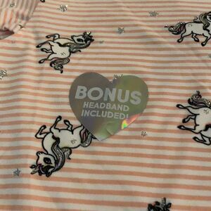 Pink and white striped with sparkly unicorns