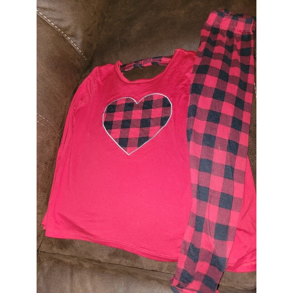 Btween holiday Christmas red buffalo plaid outfit top leggings size 10