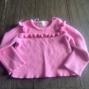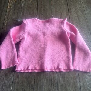 Btween pink knitted 2pc outfit long-sleeve, ruffle-trim top, flared pants. 2T