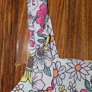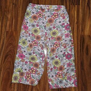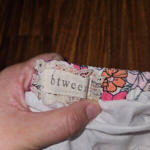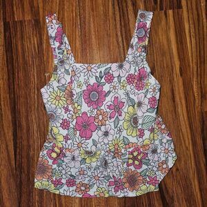 Btween White Pink Orange Floral 2 Piece Set Peplum Tanktop Wide Leg Linen Pants