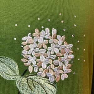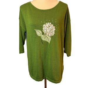 Bua/ Bua Sweater Women Small Green Embellished Embroidered 3/4 Sleeve Hydrangea