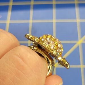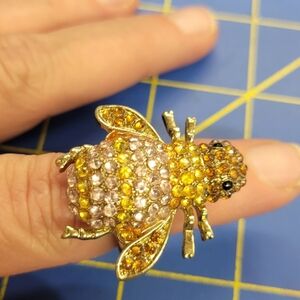 Bubble Bee Yellow & White Rhinestone Gold Tone Adjustable Ring