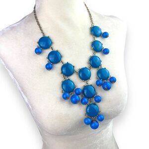 Bubble bib statement necklace in two tone deep cerulean blue acrylic beads.