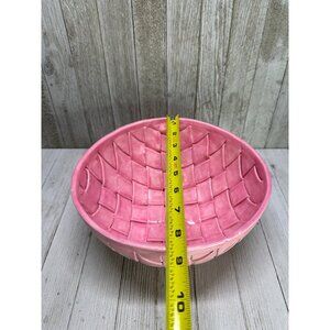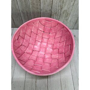 Bubble Gum Pink Ceramic Bowl Weaved Design Artist Made Stamped Dated 2012