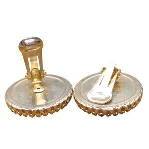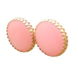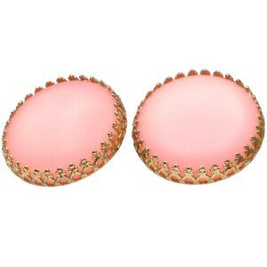 Bubble Gum Pink Frosted Glass Disc Earrings, Clip On in Vintage Gold Tone Setting
