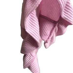 Bubble Gum Pink Hi Low Sweater Sz Med Oversized Bouncy Ribbed Knit Ruffles