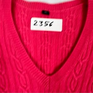 Bubble Gum Pink V Neck Cashmere Cable Knit Sweater.