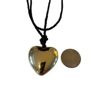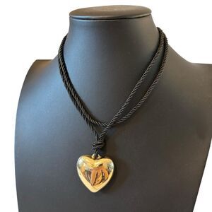 Bubble Heart Gold Tone Choker Pendant Necklace on Sleek Black Cord.