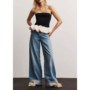 Step out in style with this elegant black and white jumpsuit. Perfect for any occasion, this piece offers a chic and modern look.