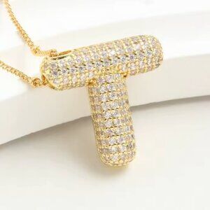 Bubble Letter T Pave Necklace Balloon Initial Rhinestone NEW